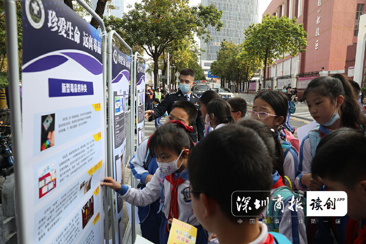 宣讲活动后,强戒二所民警与龙华区禁毒办、龙华区民治街道禁毒办工作人员还通过展示毒品仿真模型、发放禁毒宣传册、摆放禁毒知识和防范“麻精药品”滥用宣传展板等多种形式,吸引学生们驻足辨识毒品类型、观看宣传展板,工作人员在现场一一解答了学生们在毒品认知和防毒拒毒方面的疑问,进一步帮助学生们认识毒品、了解毒品危害和防范“麻精药品”滥用。