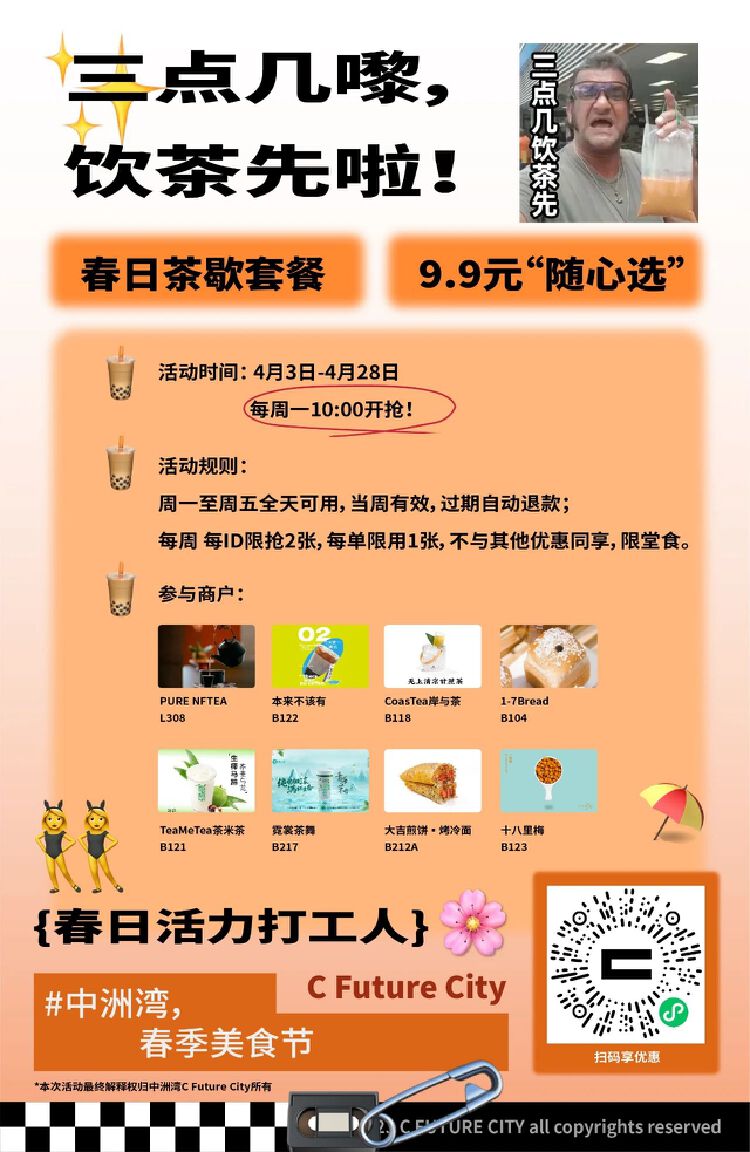 作为新晋网红地标,分会场福田中洲湾将开启《Brand十周年纪念展览》以及《瞰世界-卫星遥感艺术展》。另外【春季美食节】已于4月3日开启,领取优惠再下嘴,快乐翻倍!活动截止4月28日,“吃货们”别错过。