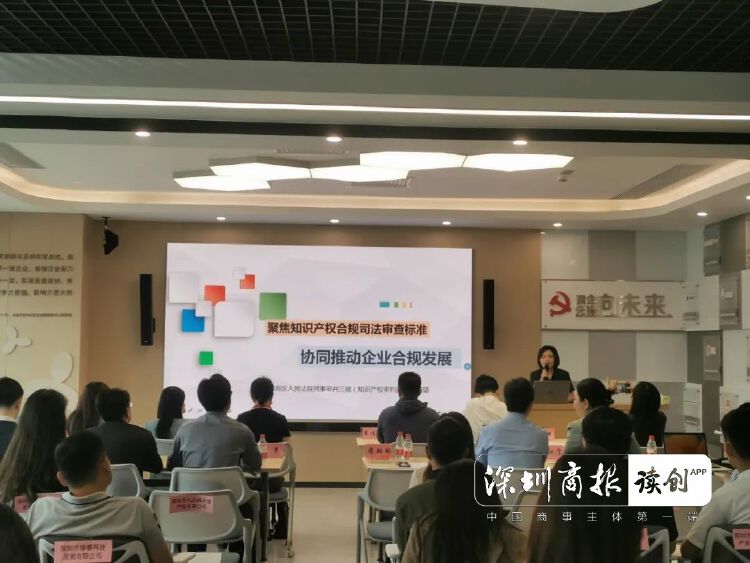 4月26日下午,罗湖法院为辖区45家国家高新、专精特新企业举办了题为《聚焦知识产权合规司法审查标准,协同推动企业合规发展》的讲座,帮助企业解决知识产权保护难、知识产权转化率低、知识产权运用缺乏指导等问题,精准激发市场主体活力。在讲座中,法官蒋璐璐介绍了重点分析知识产权刑事合规的相关规范性文件及司法审查标准,结合审判实践,以丰富的案例,展示了企业合规的法律效力和示范效应,引导企业主动合规,形成合规文化传承。
