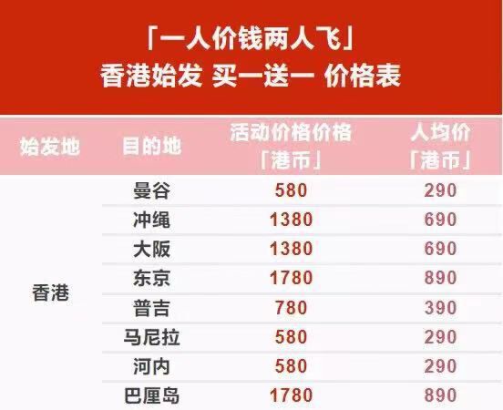 登陆携程、飞猪、同程、去哪儿网等平台,搜索香港出发至指定目的地航线,选择带有“买一送一,人均价”“二人同行买一送一”等标识产品,即可享受本次活动优惠。