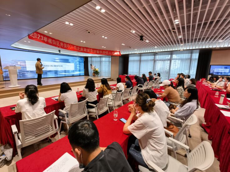 活动最后,福田区工信局结合今年的工作重点及区出台的稳外贸扶持政策,逐一向参会企业详解了支持外贸企业政策,包括产业空间支持、境外参展、出口信用保险政策等内容,希望福田企业借助政策进一步发展。