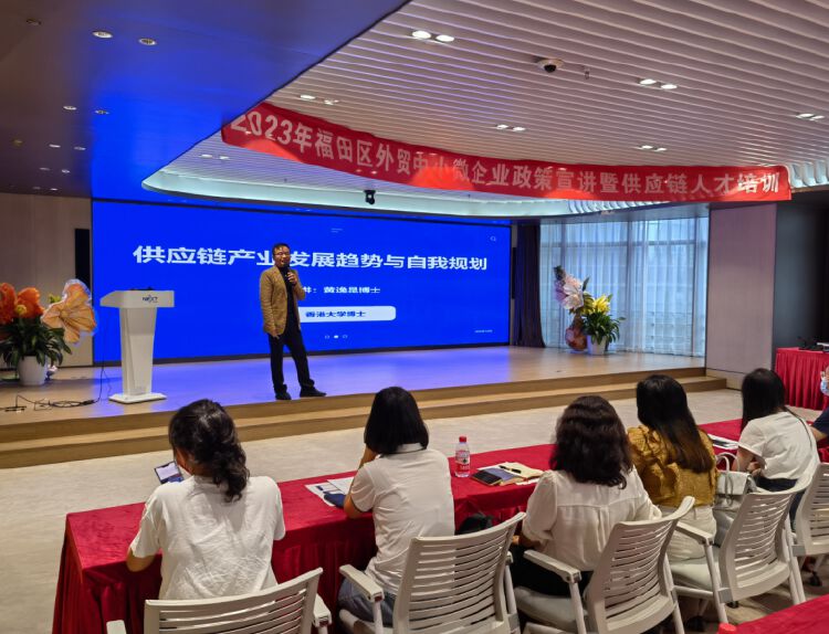 受区工信局特别邀请,福田区博士交流协会会长、区政协委员,香港大学博士黄逸昆面向外贸供应链企业主讲了“供应链产业发展趋势与自我规划”的主题培训,分享当前复杂严峻的国际形势下供应链的重要性,针对国际发展趋势、供应链产业发展趋势、个人发展规划等方面,为企业供应链发展提供新思路,有效助力培养供应链人才,实现供应链高效、优质发展,全面提升小微企业外贸竞争力。