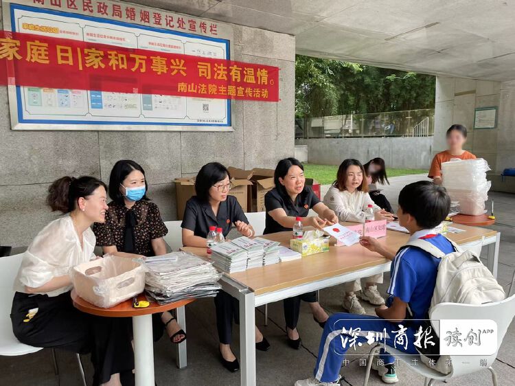 南山法院坚持以人民为中心,充分满足人民群众特别是妇女儿童对司法保护的多元需求,积极实施家事少年审判方式改革,在西丽法庭建成全市规模最大、功能齐全的家事诉讼服务中心,柔性化解家事纠纷,并建立“家庭教育指导工作站”,提升家庭教育能力,持续开展“法官进社区”“法官进校园”等主题普法活动,为全社会和谐家庭建设以及未成年人健康成长保驾护航。