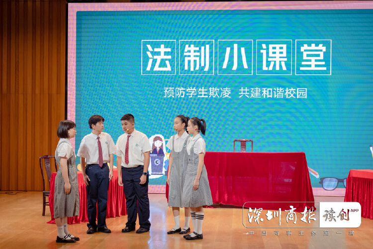 启动仪式结束后,一台“学生欺凌不可有,文明相处并肩行”法治情景剧在红立方青少年宫演出。情景剧是龙岗法院的普法形式创新,由法官根据已审结案件编剧,并指导深圳中学龙岗学校学生演绎,将教育性与趣味性熔于一炉,精彩不断,为法治宣传月拉开了序幕。