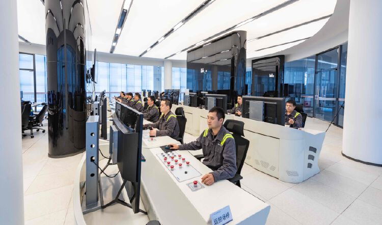 在距离码头岸边1公里左右的智能操作中心,十余名远控岸桥司机透过显示屏,手持操作手柄,在操作台上远程操控岸桥,从船上抓取集装箱,精准地落在自动驾驶集卡车上,自动驾驶集卡车根据系统规划线路行驶到堆场,由自动化轨道吊完成堆场收箱作业。整个操作由招商港口自主研发的招商芯CTOS系统控制完成。