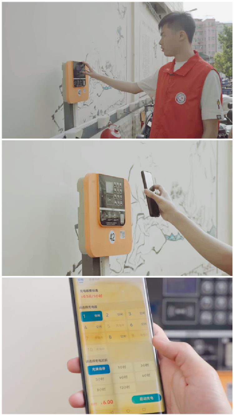 ▲南园社区随处可见的智慧充电桩系统(张国锋摄)