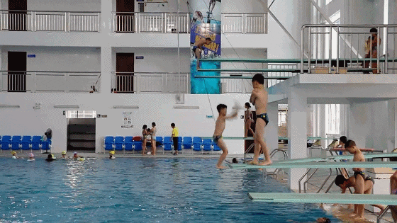 上午的训练结束,孩子们陆续走下跳台,离开泳池,他们的天性完全释放。他们疯跑,他们嬉闹,迅速跑到食堂认真“干饭”。