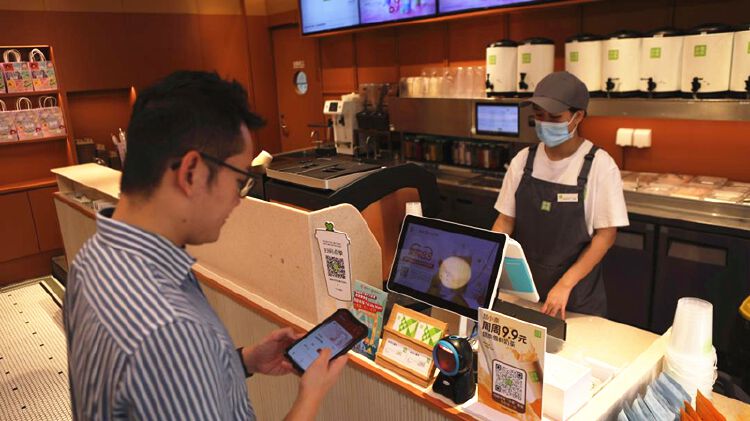今天上午10:00,北上出差的香港市民吴先生到达领展中心城,表示自己早上9:00刚领到数字人民币红包,正好趁着来福田出差的机会尝一下数字人民币的“头啖汤”。吴先生表示数字人民币红包使用过程十分便捷,在点好商品后,向商家出示数字人民币付款码即可完成支付,整个体验过程非常好。