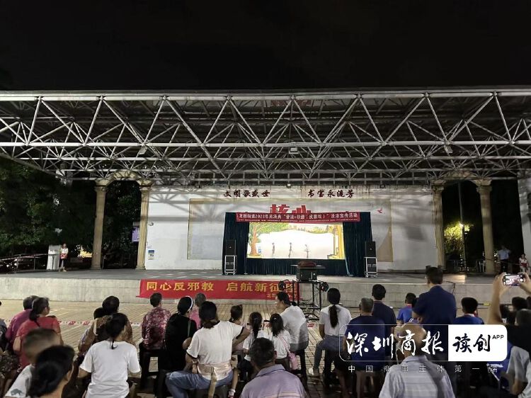 龙田街道2023年民法典“普法+非遗(皮影戏)”法治宣传活动由深圳市坪山区龙田街道办事处主办,深圳市深商传媒有限公司、深圳市非物质文化遗产保护协会承办,龙田社区工作站协办、深圳市大鹏新区非物质文化遗产促进会进行演出。演出剧目以市级非遗项目“深圳皮影戏”为载体,把抽象的法律条文具象化,让广大社区居民在寓法于乐的活动氛围中加深对民法典等相关法律知识的认识。