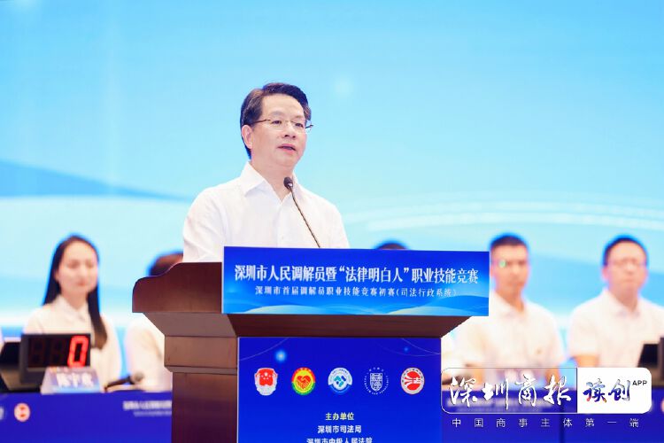深圳市司法局党委委员、副局长曹海雷出席活动,并发表讲话,期望广大调解员以此次技能竞赛为契机,不断苦练调解本领、修习调解内功,竞出水平、赛出风格,在本次竞赛中取得优异成绩。