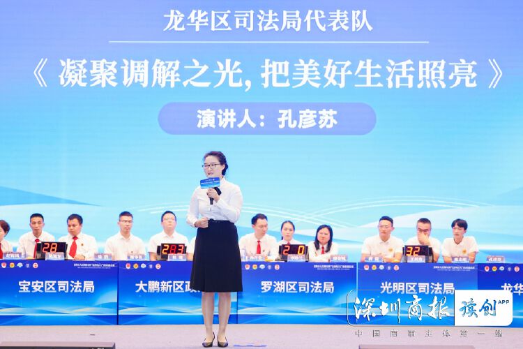“人民调解员,不仅能调处一桩桩案件纠纷,还能帮助一个个期盼着幸福的家庭迎接他们美好的人生。”龙华区调解员孔彦苏声情并茂。