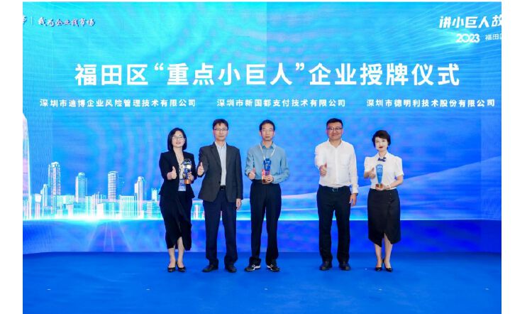 活动现场为深圳市迪博企业风险管理技术有限公司、深圳市德明利技术股份有限公司和深圳市新国都支付技术有限公司等3家获工信部重点支持的“小巨人”企业授牌,并举办了企业产销合作及融资合作签约仪式。