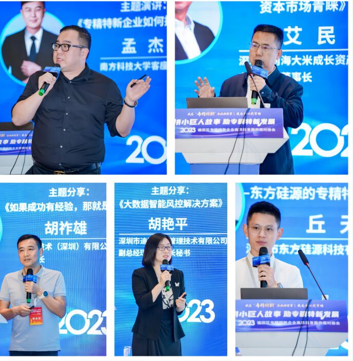 南方科技大学客座教授孟杰、大米创投董事长艾民分别做《专精特新企业如何拓展国内外市场》、《专精特新企业如何赢得资本市场青睐》主题演讲,帮助企业了解如何拓展营销渠道,提升企业品牌影响力;同时,深圳市东方硅源科技有限公司、迪博风险管理技术有限公司与凌雄技术(深圳)有限公司三家专精特新“小巨人”企业登台进行主题演主讲,分享企业数字化转型、探索自身高质量发展的成长之路。