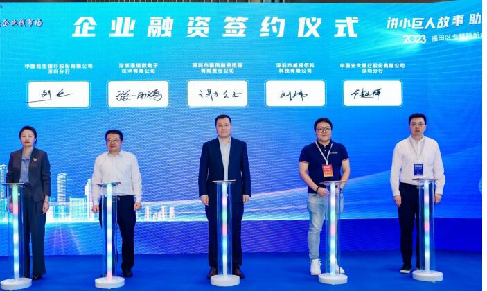 签约仪式上,深圳市东方硅源科技有限公司与深圳市世纪联合创新科技有限公司、深圳市中易腾达科技股份有限公司与深圳小澈科技有限公司进行了产销合作签约,合作金额达6500万元;深圳通锐微电子技术有限公司与中国民生银行股份有限公司深圳分行、深圳市威视佰科科技有限公司与中国光大银行股份有限公司深圳进行了企业融资签约仪式,融资金额达2500万元。