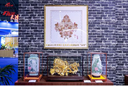 潮州木雕《四海潮音》来自获金狮国际广告影片奖银奖的赵伯祚老师作品,将潮州音乐与潮州木雕巧妙结合,助力优秀创新性转化。翡翠玉雕《四大发明》是中国工艺美术大师张炳光老师的作品,采用浅浮雕与微雕相结合的方法,歌颂中国古代辉煌的技术成就。金子松的《金漆卧式双层虾蟹篓》是金漆木雕的杰作,金漆木雕是国家级非遗项目之一,整个作品由完整的一块木料雕刻而成,无任何拼接,营造出富贵华美、鎏金溢彩的视觉效果。佛山非遗“铜凿剪纸”《锦戏英华》,是广东省传统民间艺术之一,属于佛山剪纸中最具特色的一个品种。石湾陶塑《旗开得胜》来自中国工艺美术大师潘柏林老师的作品,雄鸡盘踞于磐石与竹头之上,寓意事业稳如磐石、旗开得胜。集国家荣耀与国际峰会于一身的国瓷永丰源系列作品,彰显中国设计和中国制造魅力,铭刻历史性巅峰时刻,极具收藏价值。