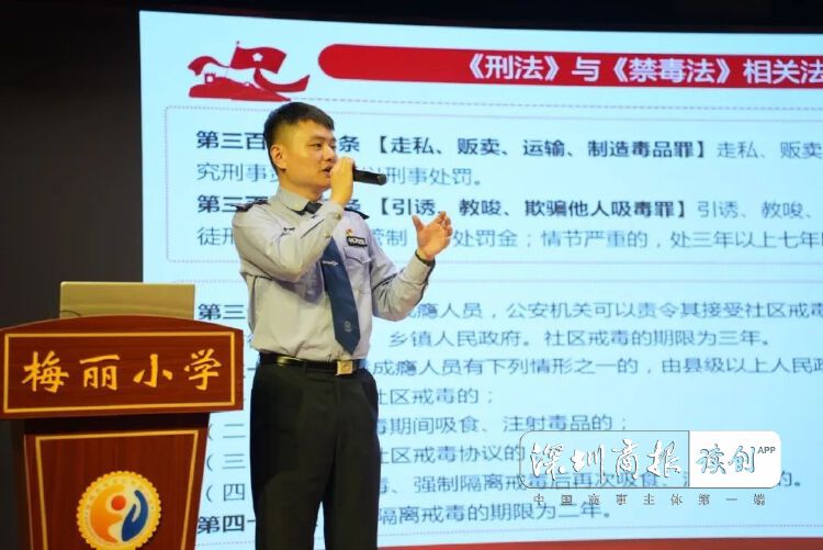 强戒二所“追光”团队讲师王麒皓警官通过闯关小游戏、趣味小问答和毒品分辨大战的形式,给同学们上了一堂生动有趣的禁毒课,在收获同学们阵阵欢呼和掌声的同时,也将禁毒常识和法律意识传递给了观众们。