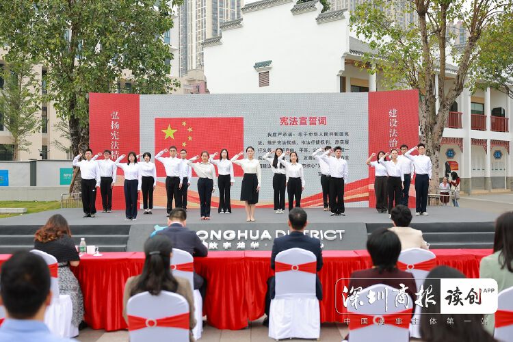 启动仪式上,龙华区开展了新市民宪法宣誓活动,发布了全省首个“法律明白人”实践典型案例集,举行了龙华区首个习近平法治思想学习宣传基地揭牌仪式等。