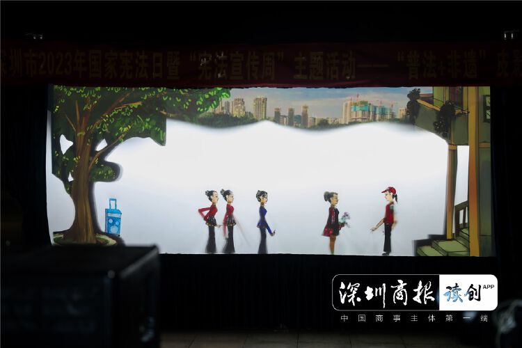 夜幕降临,由深圳市司法局、深圳市普法办主办,深圳市深汕特别合作区党工委全面依法治区办协办,深圳市深商传媒有限公司、深圳市非物质文化遗产保护协会承办,深圳市大鹏新区非物质文化遗产促进会进行演出,深圳市非物质文化遗产保护名录《皮影戏(深圳)》传承群体领衔主演的“普法+非遗”皮影戏,以贴近生活的故事情节、寓法于乐的丰富内涵、生动有趣的角色表演吸引了深汕人民群众驻足观看,成为活动现场的一大亮点。
