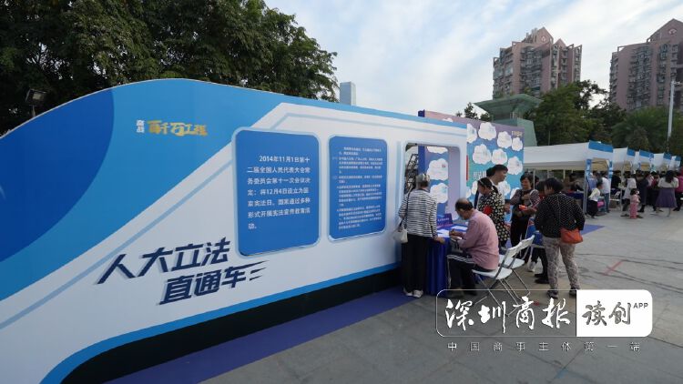 人大立法直通车以立体法治展板构筑成形状为一节行驶在轨道上的列车车头,寓意我国法治建设正走在高速发展的轨道上。居民通过直通车可了解国家宪法日设立以及河套、益田两个立法联系点的实际工作情况,辖区人大代表及立法议事会成员将在车厢窗口接待群众,面对面倾听群众立法意见建议,征集民生实事意见,宣传介绍基层立法联系点。