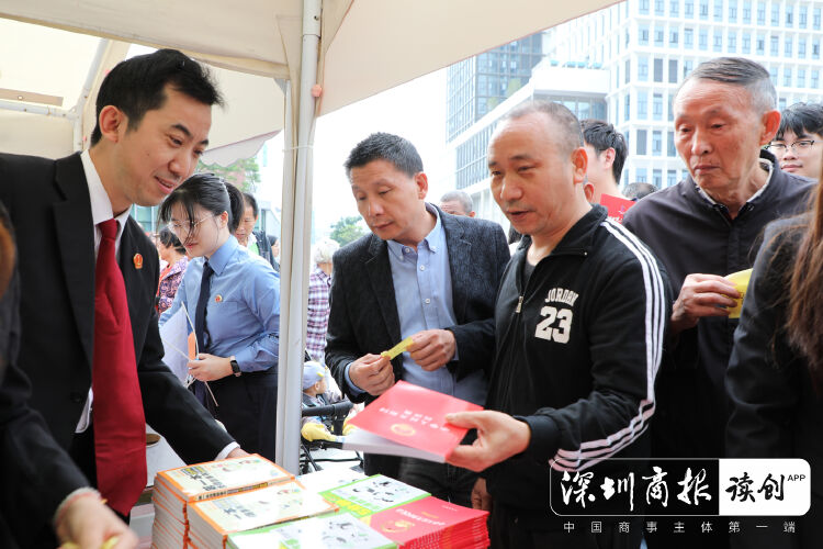 12月1日上午,深圳民法公园人声鼎沸,热闹非凡。龙华法院应邀参加龙华区2023年“12·4”国家宪法日暨“宪法宣传周”启动仪式,并摆摊设台开展普法活动。“这书给我儿子看正合适”“我要三本,孙子孙女一人一本!”法院“摊位”前,居民排起长龙,《中华人民共和国宪法》《中华人民共和国民法典》、法律漫画等书籍广受居民欢迎,一旁的法官时不时为前来咨询的居民答疑解惑,普及养老诈骗、电信诈骗等法律知识。本次活动持续2个多小时,共计向群众发放法律宣传资料300余份,发放普法小礼品300余份,提供法律咨询服务20余次。