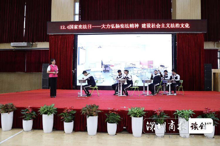 12月4日下午,南山实验教育集团南海中学校园剧场的舞台热闹非凡。南山法院携手深圳市中级人民法院、深圳市普法办、深圳市文学艺术界联合会,将一场法治文艺演出送进南海中学,给同学们带来了一堂沉浸式普法教育课。