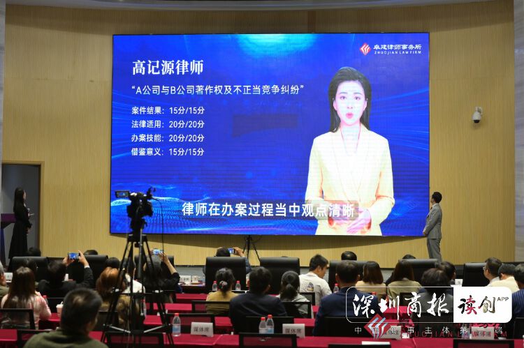 为体现律师法律服务对网络时代和流量的重视,此次大赛特别设置了选手初赛晋级后的网络投票环节。决赛伊始,由广东卓建律师事务所主任杨林为比赛作开场致辞,参赛选手按照抽签顺序进行十分钟以内的演讲,由专业评委和AI评委现场打分、点评。