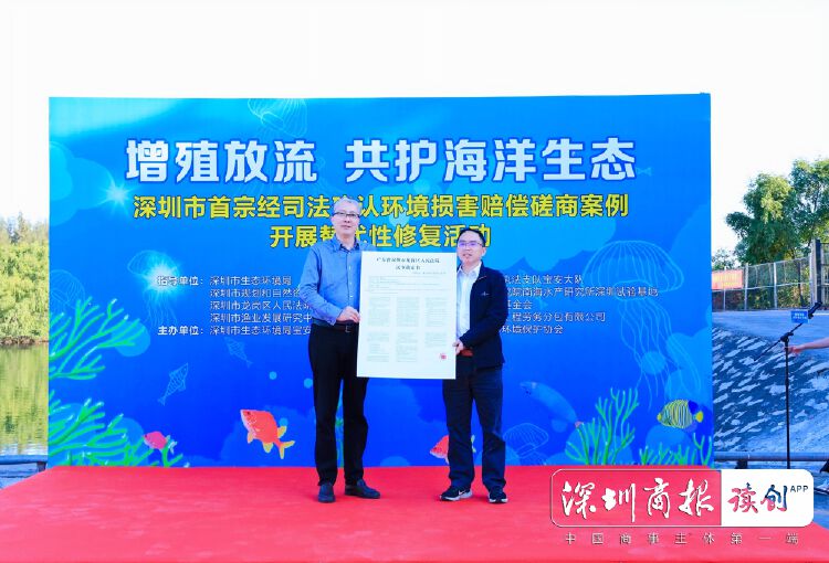 根据赔偿协议和司法确认文书,龙岗法院联合生态环境管理部门,督促涉案企业落实替代性修复工作,为确保修复方案的可行性和科学性,经与海洋渔业部门、第三方公益组织共同研究,结合大铲湾码头海域水质水温等环境特性,最终选定黑鲷作为放流鱼苗品种。放流现场,龙岗法院和生态环境管理部门科学组织、有序开展鱼苗投放工作。放流活动还邀请了部分宝安区人大代表、政协委员、企业员工以及第三方公益组织和环保志愿者参与见证,环保志愿者还现场向公众科普增殖放流及环境保护知识,倡议保护海洋环境。