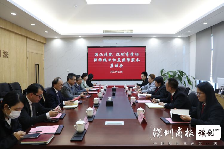 随后,双方召开律师执业权益保障服务座谈会。深圳律协与会人员详细了解了深汕法院在诉讼服务、审判执行等工作。座谈会上,双方围绕如何共同推进法律职业共同体建设以及律师职业权益保障服务进行充分交流,与会人员踊跃发言,就律师职业权利保障、律师参与调解等方面建言献策。