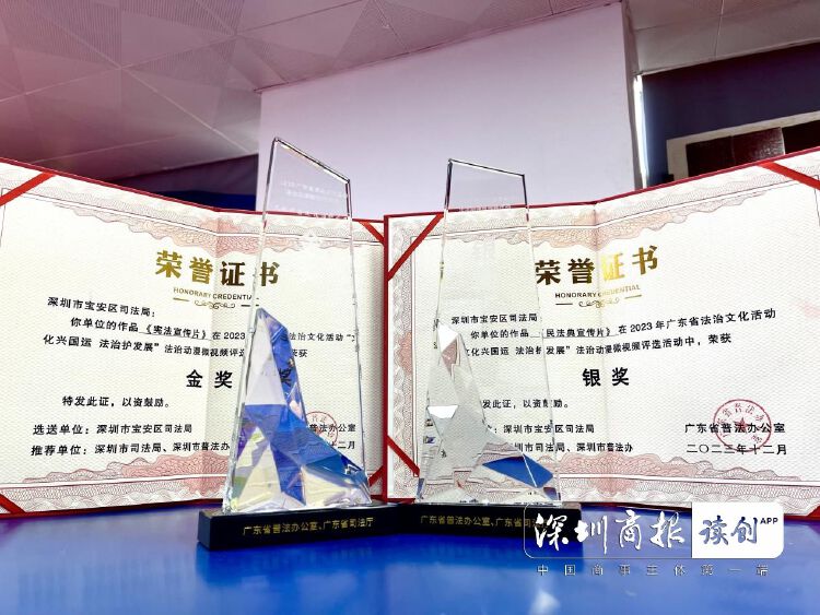 宝安区司法局注重法治文化形象塑造,开发了20余款法治IP文创产品,向群众发放法治宣传册、法治读本、法治口罩、法治公仔、法治抱枕、手机支架等法治产品70余万件,通过生动形象的方式让法律条文变得鲜活起来。同时,加大视频类法治作品创作,其中,《不让青春留伤疤》和《宝青天讲民法典》分别荣获广东省法治文化精品金奖和银奖。此次获奖的《宪法宣传片》和《民法典宣传片》再次证明了其在法治文化创作上的创新实践。