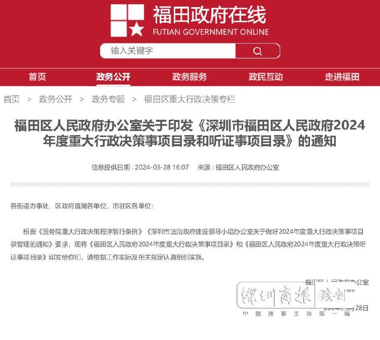 2024年,为落实重大行政决策程序制度,促进科学民主依法决策,福田区精心开展重大行政决策目录制定工作,对全区各部门职能范围内的重大事项进行全面梳理,组织区政府办公室、发展改革部门、财政部门及政府年度重点工作承办部门会商年度政府重大行政决策目录,经过多番论证沟通,编制区政府2024年度重大行政决策事项目录和听证事项目录,有力推动了决策活动的规范化、程序化。