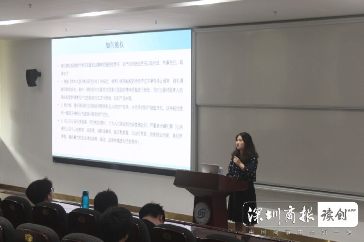 课堂上,龙岗区“八五”普法讲师团成员文继芳律师紧扣大学生学习生活实际情况和当前社会网络舆论发展形势,围绕网络暴力、网络安全、个人信息保护等问题,引用社会热点话题和实际案例,从社会发展和大学生自身防护的角度,深入浅出的讲解了应对网络暴力以及依法保护个人信息安全的方法。