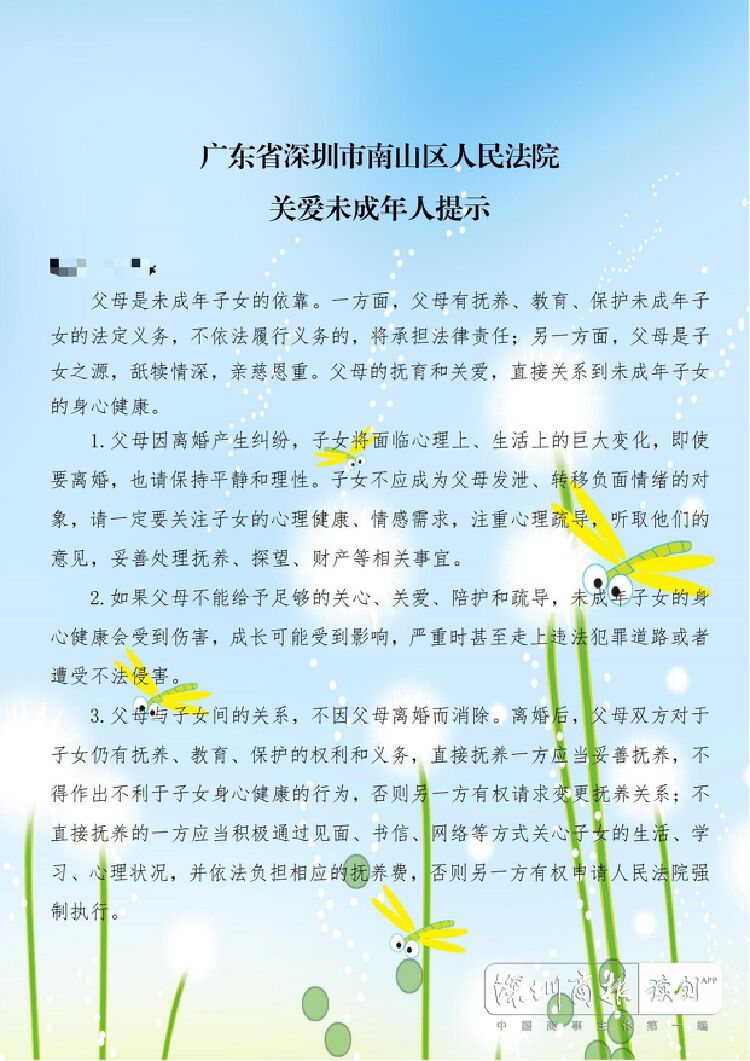 未成年人是国家的未来与希望,保护未成年人健康成长是全社会的共同职责。南山法院方面表示,将进一步落实最高人民法院相关工作要求,牢牢把握“坚持最有利于未成年人”等工作原则,积极探索符合未成年人健康成长的纠纷化解方式,以司法力量坚定护“未”成长。Copyright©2020 Sxzm. All rights reserved.