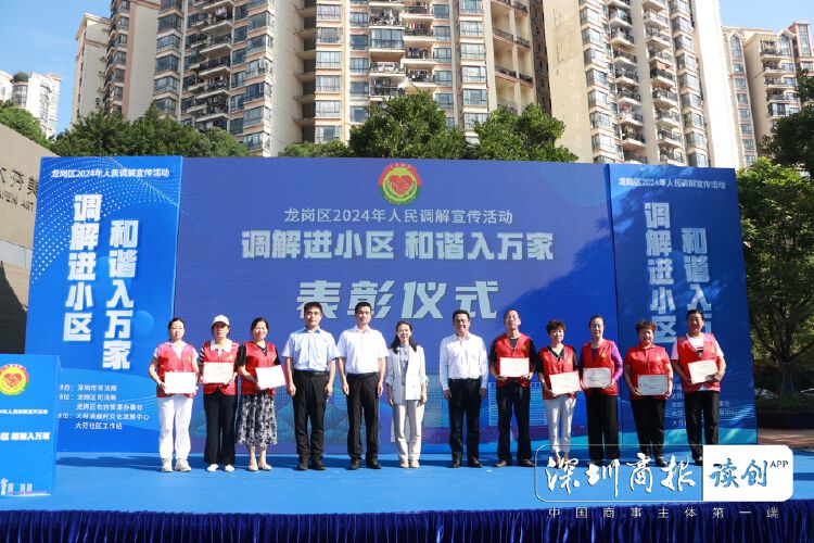 活动现场,龙岗区在布吉、龙岗、龙城等街道较大的物业小区设置的7个联合调解点正式揭牌。联合调解点将通过多元化联合调解工作方式,把人民调解服务的触角延伸到基层治理“神经末梢”,将熟悉民情的社区能人充分吸纳进调解队伍中,把矛盾纠纷化解阵地建到群众身边,实现矛盾就地化解,让调解服务惠及千家万户。