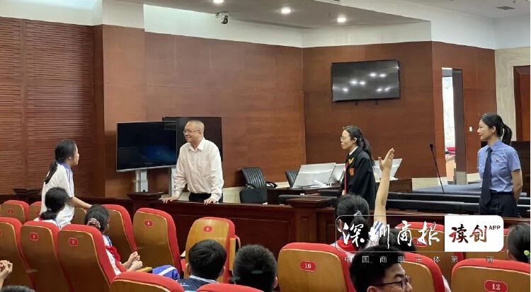 “审判长两旁的人民陪审员是怎么挑选组成的?”“中途休庭时,合议庭会发生什么事情?”“什么案件、什么行为,才需要到法院开庭审理?”闭庭后,学生们的问题一个接一个,南山法院执行局副局长、海德学校法治副校长羊大雄与南山法院法官张庆荣共同耐心答疑解惑,鼓励同学们多学习法律知识,自觉抵制不良行为,运用法律武器保护自己。