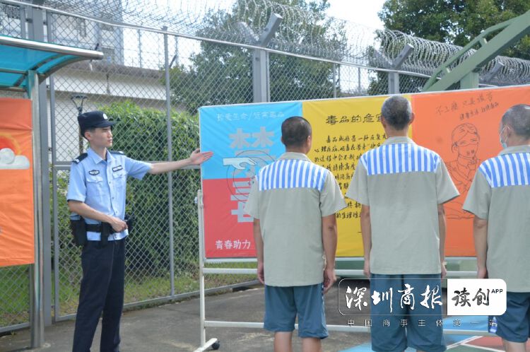 深圳监狱组织有绘画、书法特长的服刑人员围绕禁毒主题自行设计、创作宣传展板,并给服刑人员发放一份宣传小册子。通过图文并茂对毒品知识、毒品危害做了详细的介绍,给参观的服刑人员以强烈的心灵震撼。