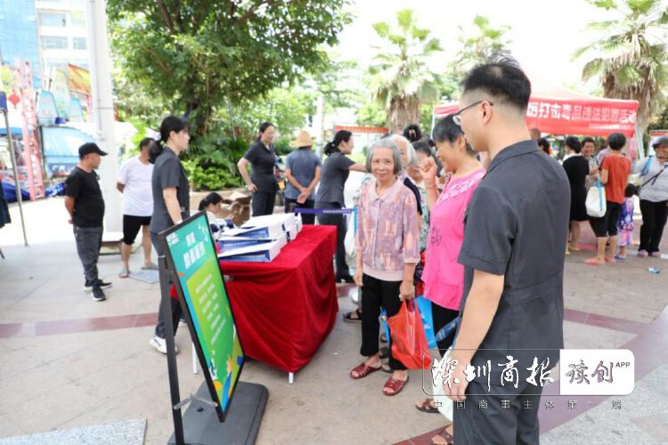 6月26日上午,深汕法院干警走进基层社区开展禁毒宣传活动。现场通过设置法律咨询台、法治猜谜小游戏以及开展“禁毒宣言”活动的方式,给人民群众带来活泼生动的法治教育课。
