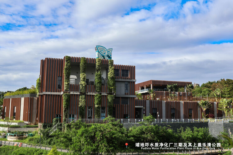 埔地吓水质净化厂三期工程是一座采用全地下式形式建设、全过程BM设计建造HOT赋能的绿色低碳智慧型水质净化厂,设计污水处理量达5万立方米/天。项日通过BM技术正向设计、虚拟建造、CBIM平台、精确曝气、数字化共享等技术,实现高度信息互通、生产实时掌控和风险丰动预警,最终建成了一座能感知、会思考、有智慧、自进化的智能体。在保证运营安全的基础上,水厂还上盖有乐清公园,建有儿童乐园、海绵城市、科普廊道、沙湾驿站等设施,集智慧、康健、娱乐为一体,是周边居民休闲的好去处。