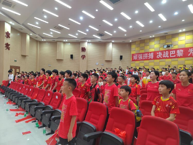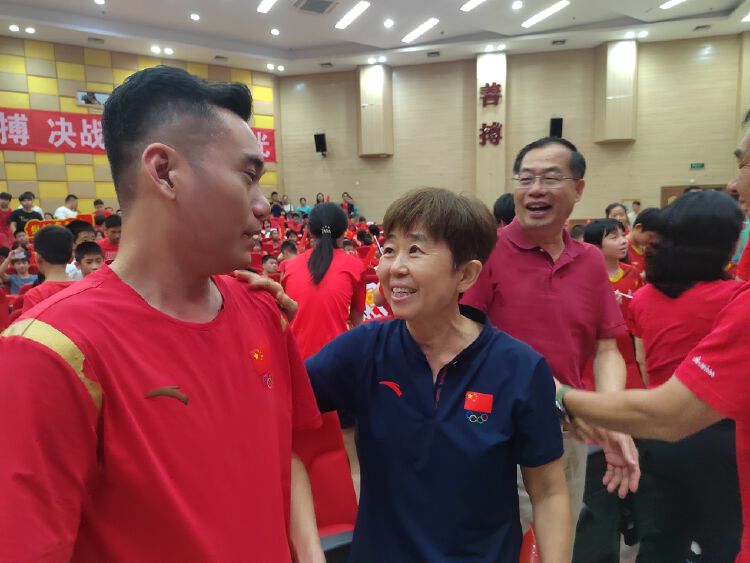 当晚,在广州体育职业技术学院举行的巴黎奥运观赛活动上,樊振东在广州体校时的主管教练张敏和罗绍伦在他夺冠一刻从座位上一蹦而起相拥而笑。