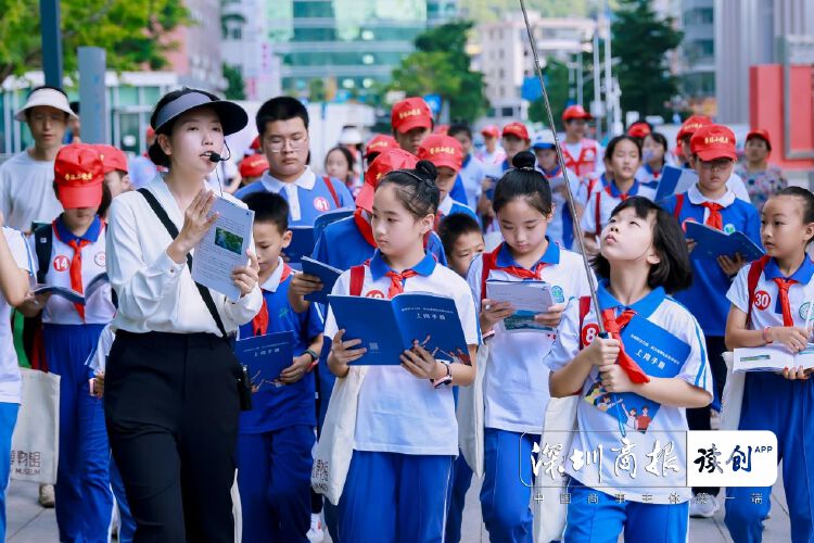 学生讲法学生听,讲解员带领游览深圳民法公园