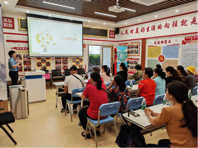 邀请深圳市人大代表、深圳市律师协会监事长、南山区委讲师团讲师曾常青解读社会主义核心价值观融入民法典的制度与实践;邀请南山区关工委“五老讲师团”的戴玉伟老师,开展了以“人生相伴民法典,学法守法用法”为主题的普法宣传讲座;邀请深圳市社会科学院政法研究所副研究员赵丹,开展了新修订《中华人民共和国保守国家秘密法》宣讲活动,为居民深入浅出地讲解了新修订的基础条文与概念。2024年,中心将持续开展“美好生活 与民法典相伴”宣讲活动,并根据群众需求每月深入街道进行普法;与法院结对共建,每月开展法官进社区法律“义诊”活动,邀请青少年进入法院参观体验法治文化;与区委政法委合作,在社区常态化开展宪法学习,以及各类与居民相关的法律条文普法行动。