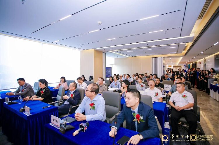 深圳市律师协会会长张斌视频致辞表达祝贺,深圳市律师协会副会长曾迈,华商律师事务所党委书记、执委会主任曾铁山,龙岗区律师行业党委副书记、龙岗区律工委主任李军强,龙岗区部分律所党支部书记和负责人、华商(龙岗)律师事务所主任蔡春雷、执行主任刘泽华及华商部分大湾区分所主任等现场参加活动。会议由华商律所龙岗分所管委会副主任储著衡律师主持。