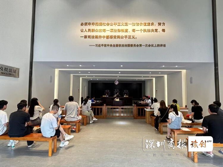 学生们在现场模拟审理了一起遗嘱继承纠纷案。随着法官敲下法槌,“现在开庭……”,学生扮演代理律师、原告、被告等角色,深度还原真实的庭审现场。