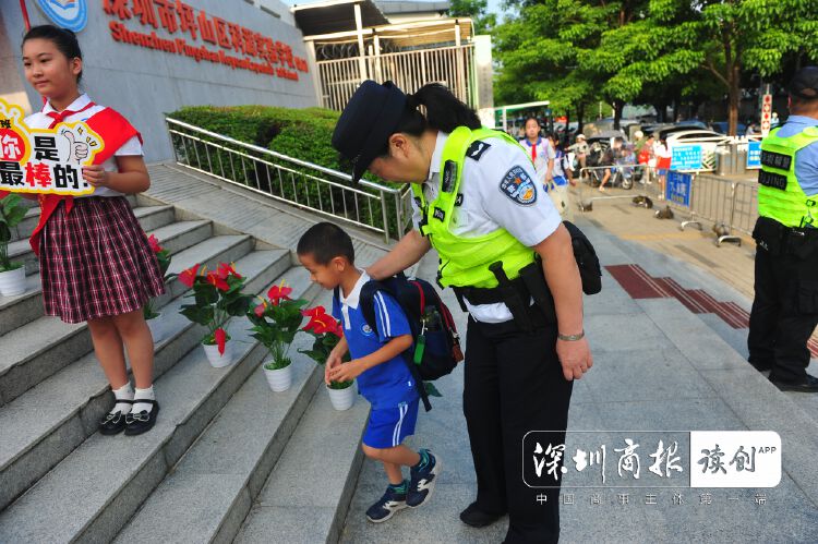 9月2日,深圳监狱、坪山区交警大队及派出所等多个单位,通过交通安全宣誓、入学护航、宣传交通安全知识等形式筑牢秋季开学安全屏障。坪山公安分局副局长王玉芝、碧岭派出所所长李德平、碧岭派出所副所长兼法治副校长孙洋在科源实验学校门口开启“护学模式”,为学生保驾护航的同时,给走进校园的小朋友们讲解交通安全知识,全力以赴把好开学第一关。