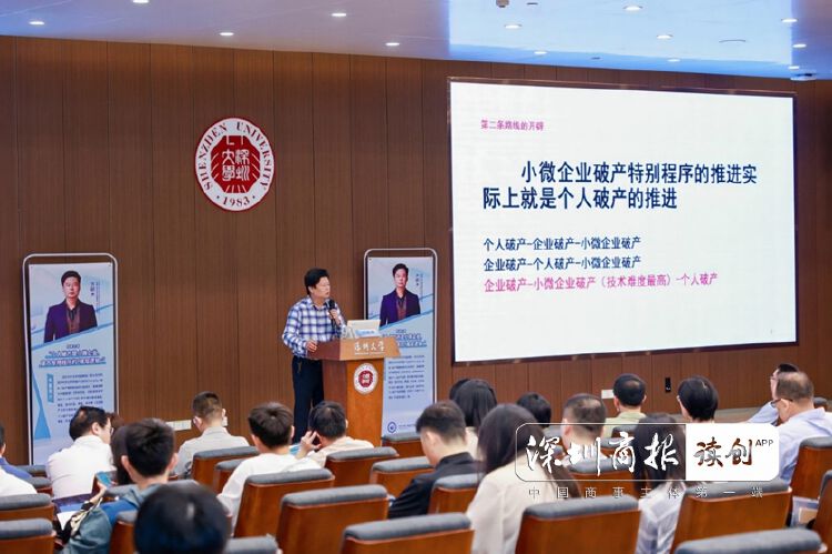 本次培训,深圳市破产管理署邀请了中国人民大学法学院徐阳光教授、深圳大学法学院齐砺杰副教授等破产法学界知名专家学者,全方位、多角度对个人破产的立法宗旨、制度内涵与价值、个人破产制度与小微企业破产专用程序的关系、小微企业破产专用程序的制度设计思路以及有关立法的重难点问题进行了深度剖析。