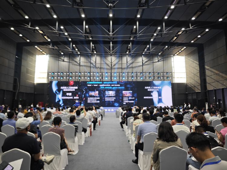 会场内,从数字主持人龙丹丹到大会KV 背景图、PPT、背景音乐均由辖区企业提供的AI技术生成,为大会渲染了浓厚的科技氛围。