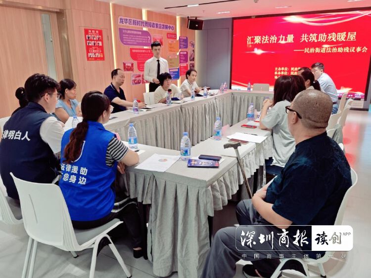 会上,民治街道司法所工作人员先介绍了议事会的背景及调查问卷数据的分析情况。随后,由残疾人代表、法律明白人、社区法律顾问、民治职康中心等多方代表围绕如何向残友提供法律知识的宣传普及工作,法律援助的条件,对法治助残议事会的建议、法律服务需求供给,助残法治品牌项目创建等五个方面进行探讨性发言。