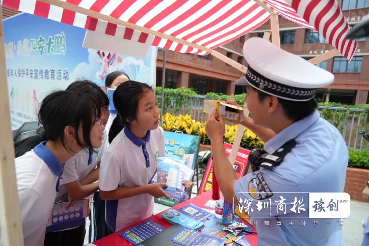大鹏新区2024年未成年人保护平安宣传教育活动现场设置了11个主题打卡展位,通过发放宣传资料、现场普法等方式,向同学们介绍未成年人保护、扫黑除恶、交通安全、反邪教警示教育、反电诈等方面的知识,详尽解读《中华人民共和国未成年人保护法》《中华人民共和国反有组织犯罪法》等法律法规,引导同学们增强法律意识和自我保护意识。
