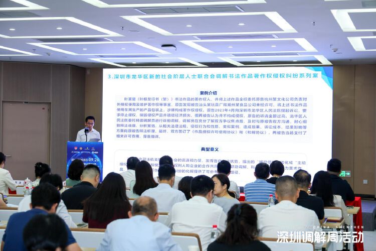 现场,深圳市市场监管局知识产权保护处处长莫缕滨发布了深圳市知识产权纠纷调解10宗典型案例,覆盖商标、专利、著作权等多个领域,充分展现了深圳不断完善知识产权纠纷多元化解决机制,加强知识产权纠纷调解的工作成效。