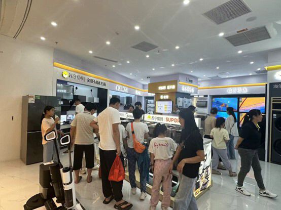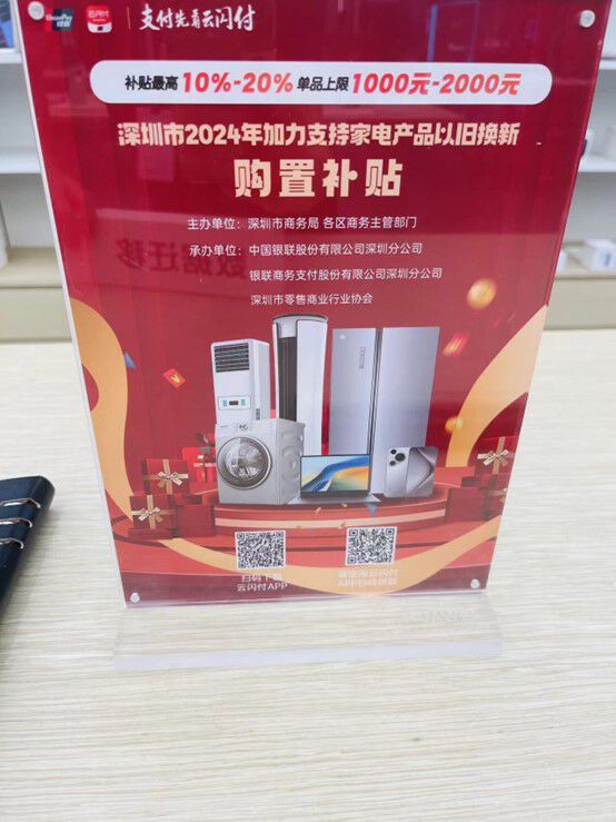 记者在深圳大运天地的苏宁易购看到,店内显眼位置就挂着“以旧换新、国家补贴,一级能效20%、二级能效15%”字眼,店内人头攒动,十分热闹。 “早就想更新家里的燃气灶,现在新款的燃气灶防干烧、节能,比家里的旧款用着放心多了,之前一直犹豫,现在有补贴就立马下手了。”刚刚预订完最新款燃气灶的吴女士开心地告诉笔者,她家的燃气灶虽然能用,但是在安全节能方面远不如现在的新款,在逛大运天地时看到优惠政策就下决心下单,立省大几百元。