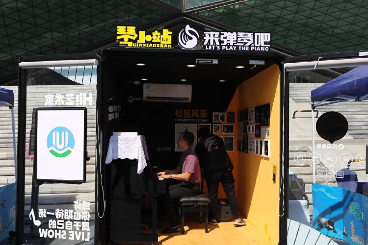 琴小站科技有限公司开发的共享智能琴房,在活动现场赢得了众多市民的目光。智能琴房的出现,极大程度上解决了部分市民“没钱买钢琴、没地方放钢琴、没人教钢琴”的痛点,为市民对艺术文化的向往提供了更多解决方案,让市民在漫步公园即可感受音乐的浪漫美好。